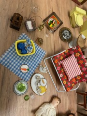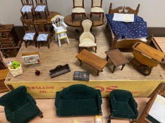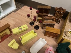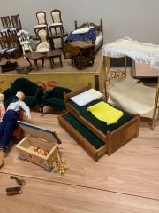 Vintage dollhouse furniture. Some items need repair but over all in good vintage condition.